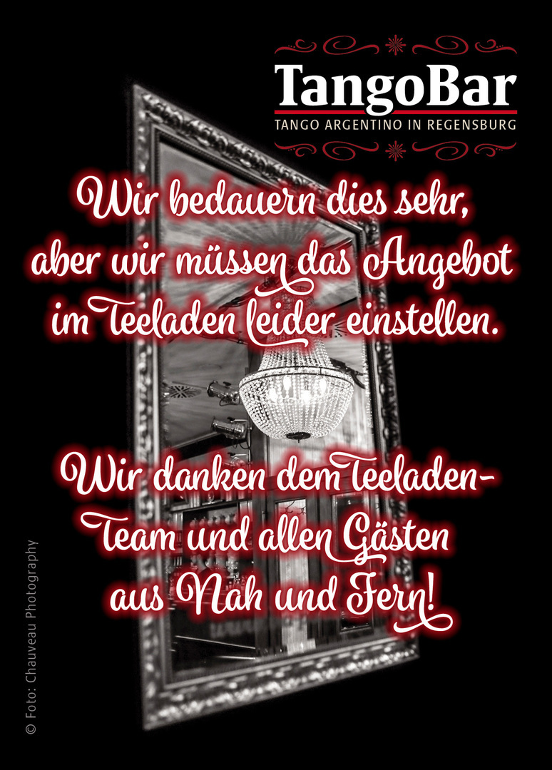 Daher haben wir beschlossen, die TangoBar im Teeladen mit sofortiger Wirkung einzustellen.